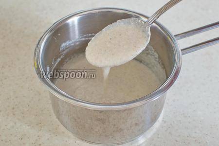Через 5-7 минут каша загустеет и начнёт кипеть