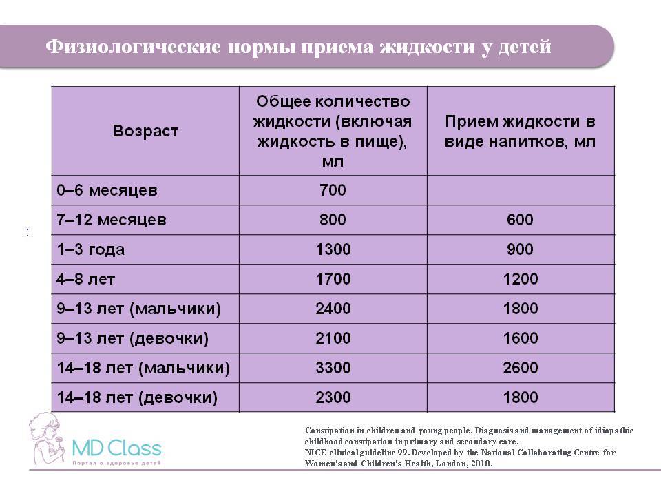 Как в нашей стране, так и за рубежом существуют определенные правила потребления жидкости. Эти нормы по-прежнему актуальны и подтверждены временем и опытом педиатров всего мира: