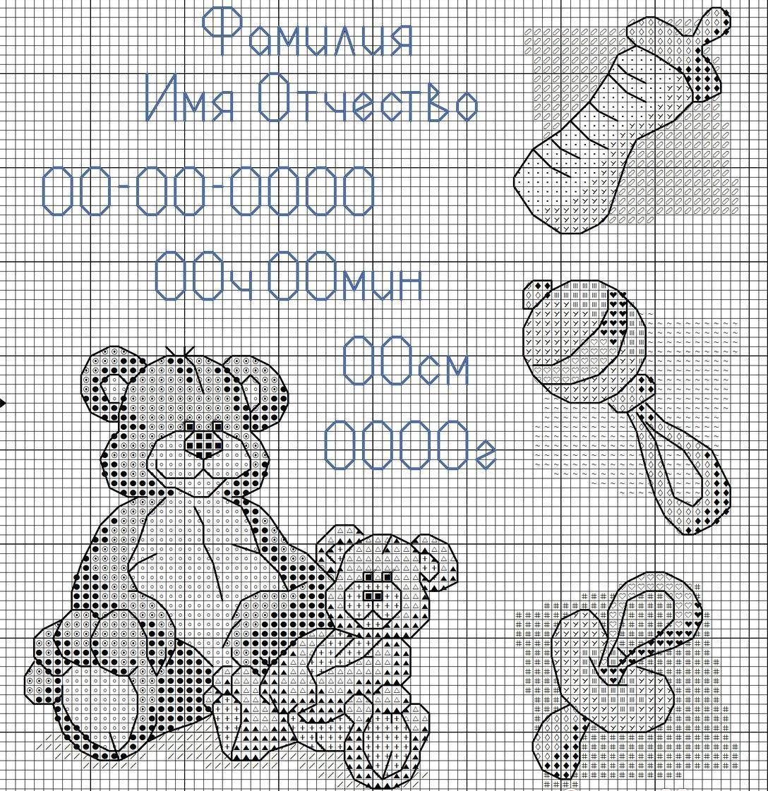 метрика для новорожденных схемы вышивки крестом — мишка