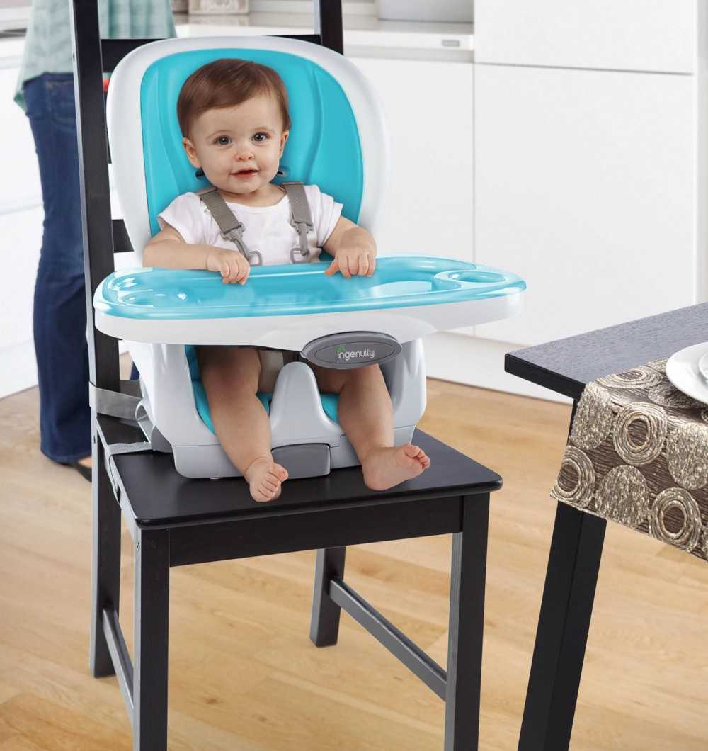 Иногда размеры квартиры не позволяют приобрести еще один габаритный предмет мебели, поэтому родители останавливают свой выбор на бустерах – маленьких стульчиках, которые закрепляются непосредственно на «взрослых» стульях.