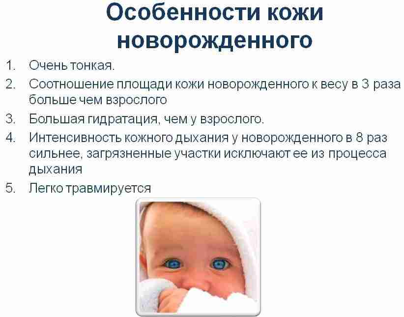 - она восприимчива к раздражениям и проникновению инфекции, ведь соотношение площади кожи малыша к его весу в три раза больше, чем у взрослого, а кровоснабжение кожи в 1,5 раза выше, чем у взрослого;
