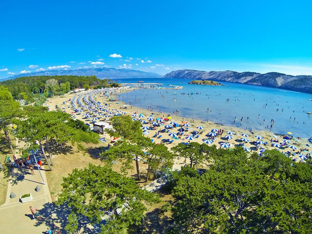 - Лучший пляж Хорватии — Райский пляж. Это один из немногих песчаных пляжей Хорватии с говорящим названием. Он находится на острове Раб, где удобнее всего поселиться в двух минутах от пляжа в апартаментах Apartments OK