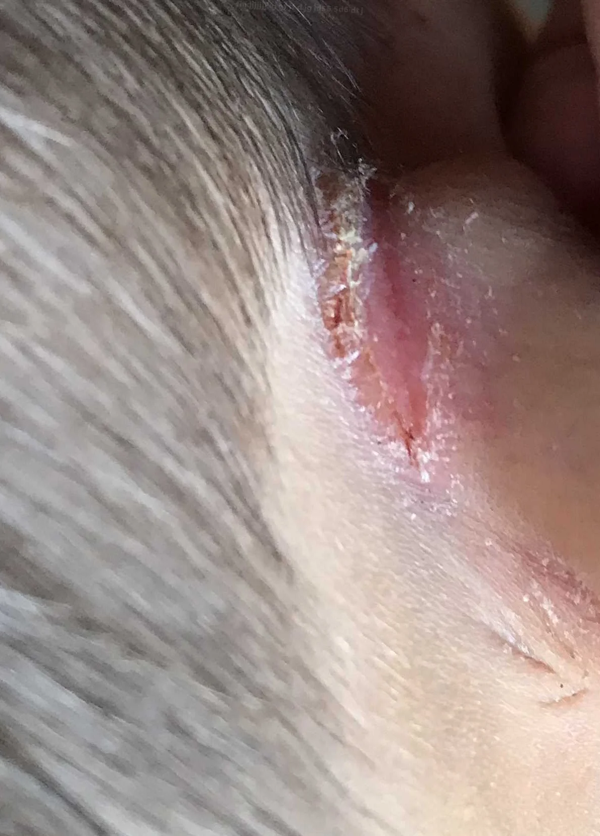 - При расчесывании корок образуются розоватые и мокнущие очаги поражения.