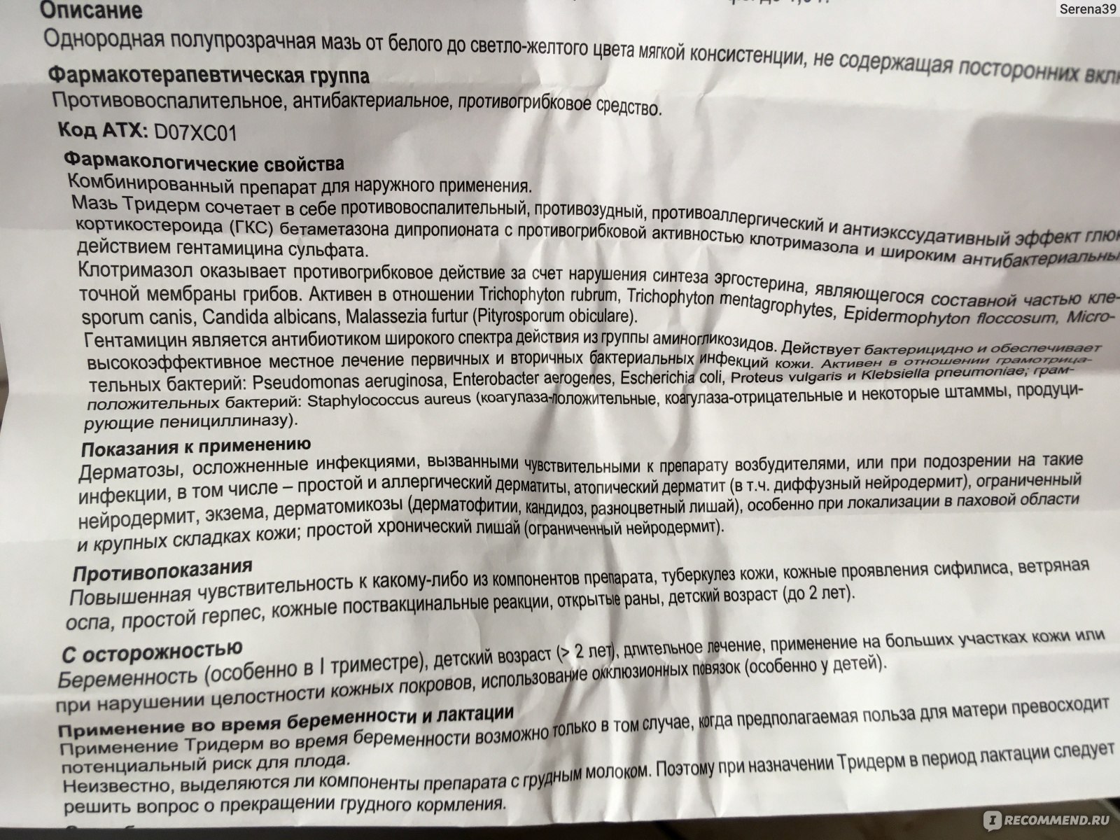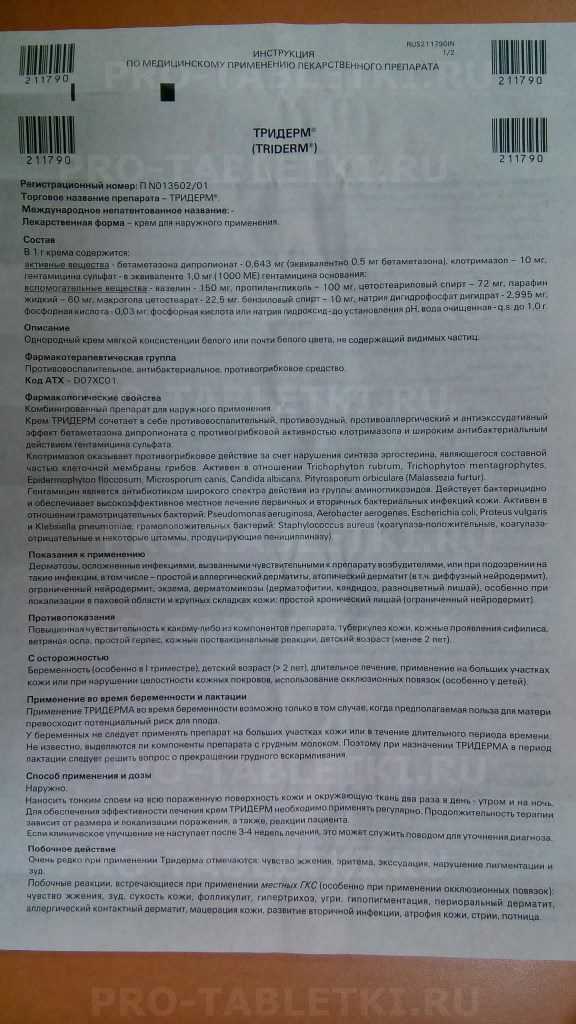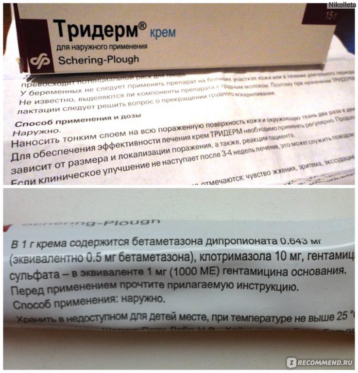 Примечание: В случае, если эффект от использования крема Тридерм не проявляется или усиливается, рекомендуется проконсультироваться с дерматологом.