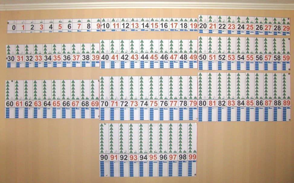 «Стосчёт». Николай Зайцев предлагает сразу показать числа от 0 до 99. Так ребёнок поймёт, сколько десятков и единиц составляет каждое число.