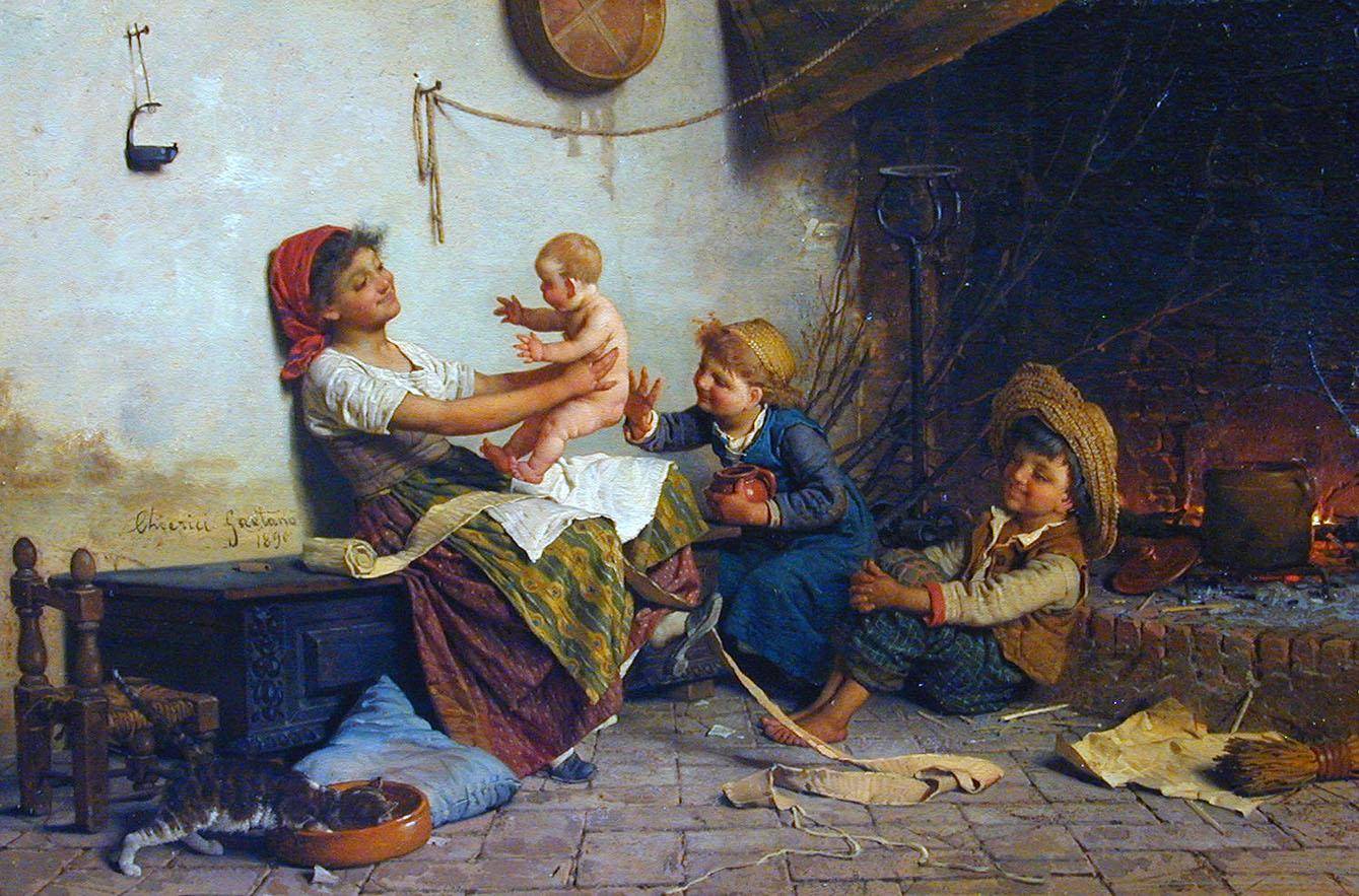 Простые горожанки в прошлом не делали и этого: у них не было времени ухаживать за новорожденным. Рано утром женщина меняла пеленки, туго пеленала младенца и укладывала в колыбель со специальным стоком для мочи. А потом уходила работать, иногда до позднего вечера.