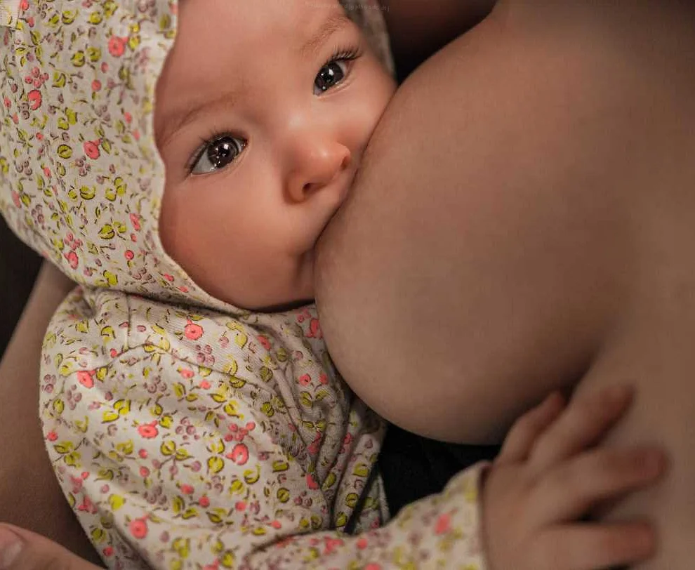 При естественном вскармливании важно следить, чтобы малыш полностью захватывал сосок вместе с ареолой. Его нижняя губа при этом обычно слегка вывернута.