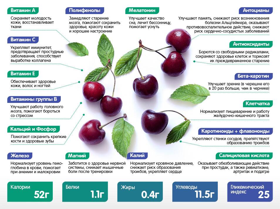 Состав вишни очень богат, в него входят:
