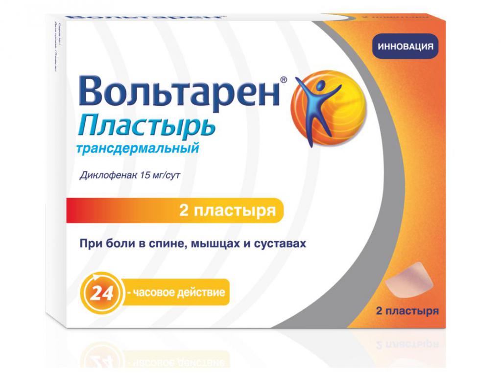 Также при небольших травмах или кратковременных болях может быть использован пластырь «Вольтарен». В инструкция есть следующие данные: