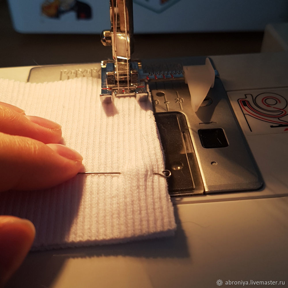 - Пришиваем подвернутый край с резинкой на машинке. Можно это сделать, не снимая булавок.