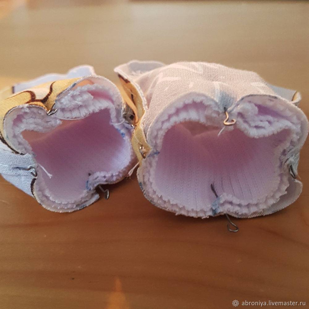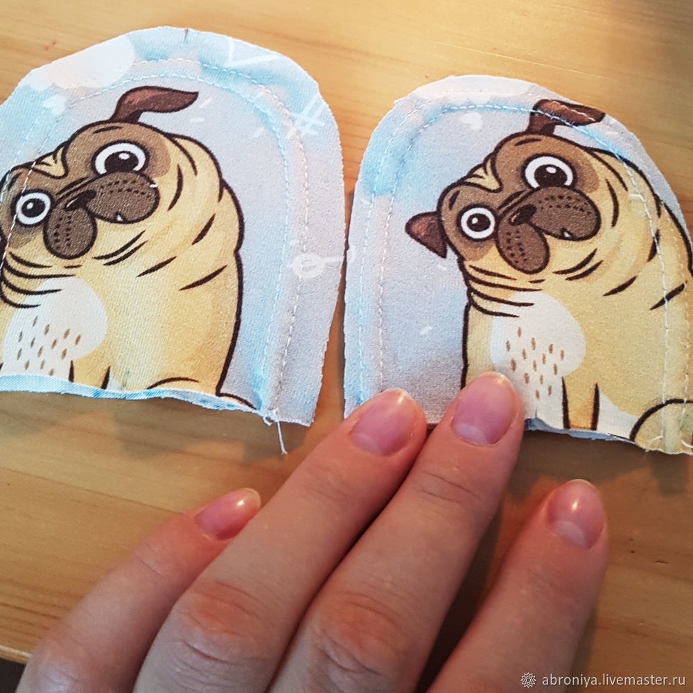 Теперь подгибаем пополам наши манжеты и вкладываем в рукавички. Швы разводим в разные стороны для уменьшения толщины: