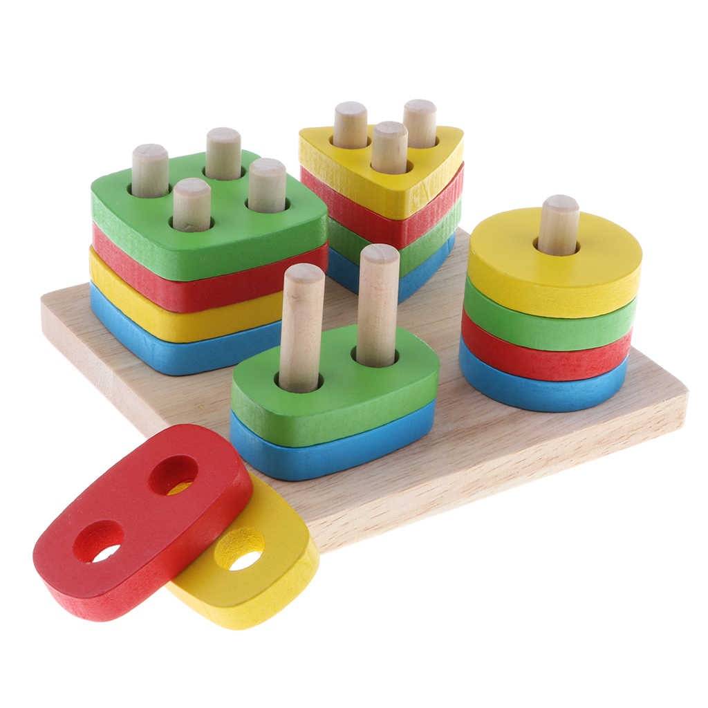 Другой пример изделий для развития интеллекта – деревянные штабелируемые игрушки. Веселые геометрические блоки учат детей различным способам укладки и классификации предметов. Это развивает координацию рук и глаз, логическое мышление.