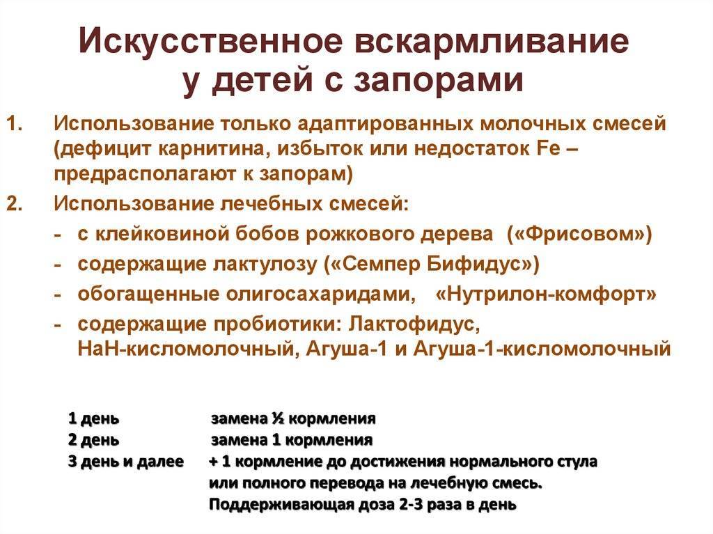 Лечебный процесс и необходимые действия при задержке стула у детей, переведенных на искусственное питание